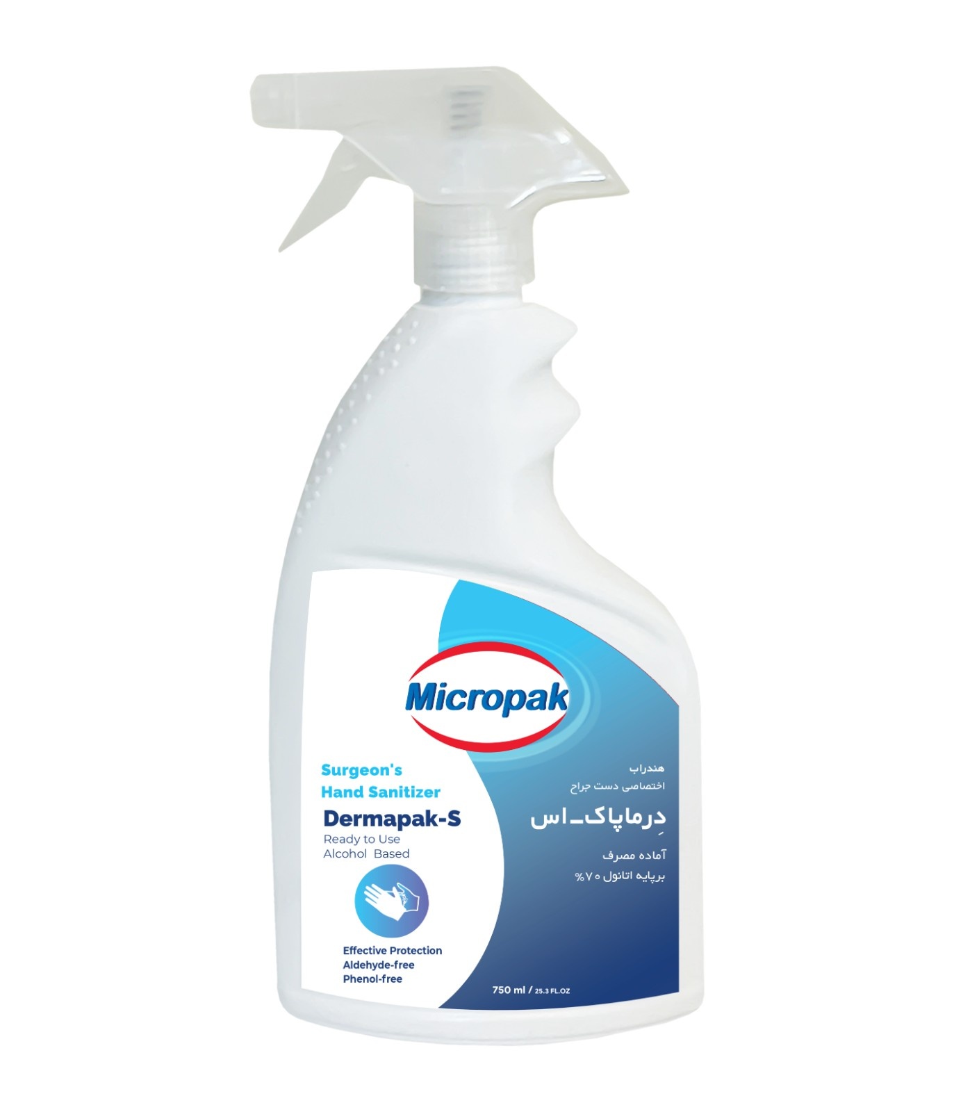 درماپــاک اس هنــدراب اختصاصــی دســت جــراح بــر پایــه اتانــول،٪٧٠ n – پروپانــول و کلرهگزیدیــن دی گلوکونــات فرمولــه شــده اســت تــا نیــاز حیاتــی بــه اثرگــذاری ســریع، گســترده و پایــدار را بــرآورده کنــد. ایــن فرمولاســیون الکلــی ترکیبــی بــا اثربخشــی علمــی اثبــات شــده، در زمانــی کوتــاه طیــف وســیعی از میکروارگانیسـم های مقـاوم را حـذف می کنـد، در حالی کـه بـا وجـود مرطـوب کننـده هـای اختصاصـی، از پوسـت در برابــر خشــکی و التهــاب در اســتفاده هــای متوالــی محافظــت می شــود. خشــک شــدن ســریع، عــدم نیــاز بــه آبکشــی، و ســازگاری بــا اســتانداردهای بهداشــت جراحــی، ایــن محصــول را بــه یــک انتخــاب قابــل اتــکا بــرای جراحان و کادر اتاق عمل تبدیل کرده است.